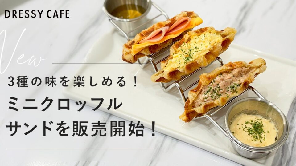 【DRESSY CAFE】人気のクロッフルサンドがミニサイズで登場。3種の味を楽しめる「ミニクロッフルサンド」を販売開始