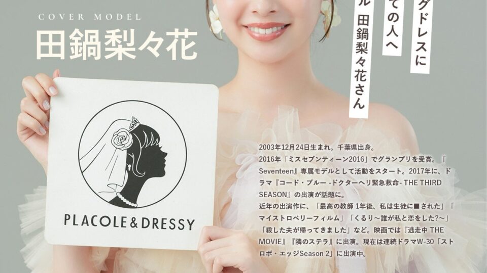 俳優/モデル 田鍋梨々花さんが『PLACOLE&DRESSY』にウェディングドレス姿で初登場!ウェディングドレスに憧れるすべての人へのメッセージとは