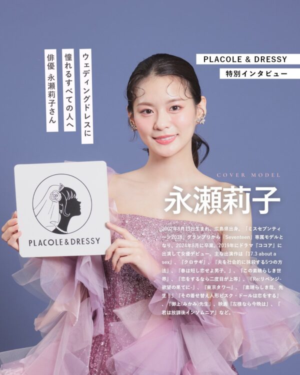 俳優 佐々木美玲さんが『PLACOLE&DRESSY』にウェディングドレス姿で初登場!ウェディングドレスに憧れるすべての人へのメッセージとは
