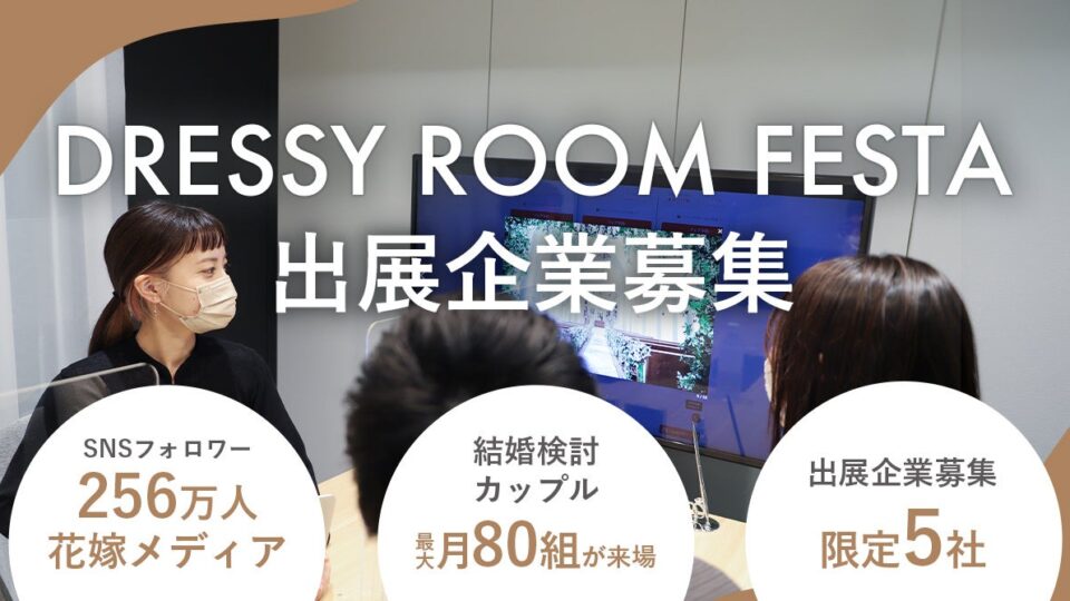 SNS255万人の花嫁コミュニティ × リアル接点 結婚を検討するカップル月100組が来場する体験イベント「DRESSY ROOM FESTA」出展企業募集開始